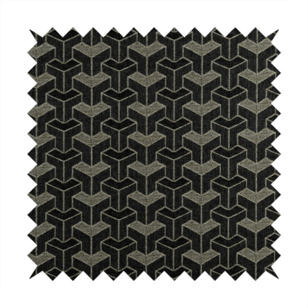 Baha Geometric Key Pattern Cream Black Colour Upholstery Fabric CTR-2485